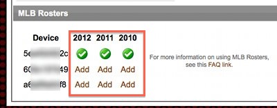 you can scroll to the bottom of the Account tab, and you will see your additional device(s) listed in the MLB Rosters section with