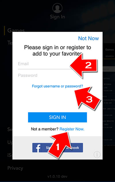 How to I register or sign into the iScore Central app?