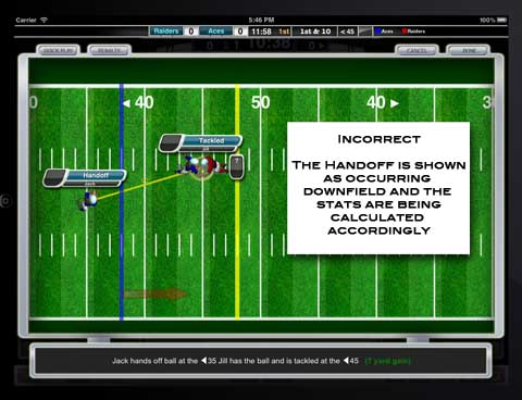 which makes iScore think the handoff occurred downfield and assigns the yardage as if this was the case. For a typical running play,