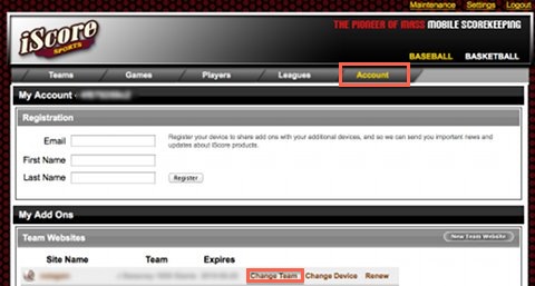 1. Log in to the Admin Website of the device that is linked to your Team Website (http://my.iscorecentral.com)